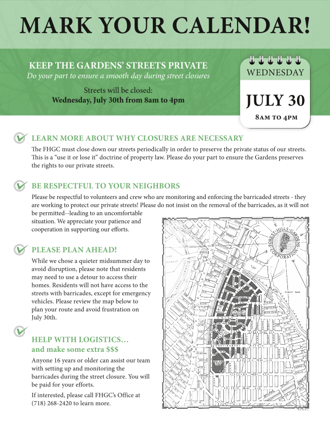 -Forest Hills Gardens Corporation: Annual Street Closing Day - Wednesday,