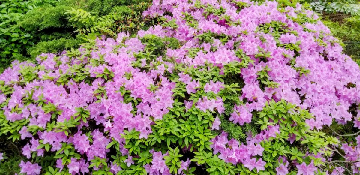 Forest Hills Gardens is home to a large number of Rhododendron & Azalea plantings. These shrubs belong to the same family and are both typically evergreens. However, rhododendrons tend to grow much larger in height and width; while azaleas are more compact with smaller leaves. They both produce flamboyant flowers in a variety of beautiful colors and are best planted in the spring.